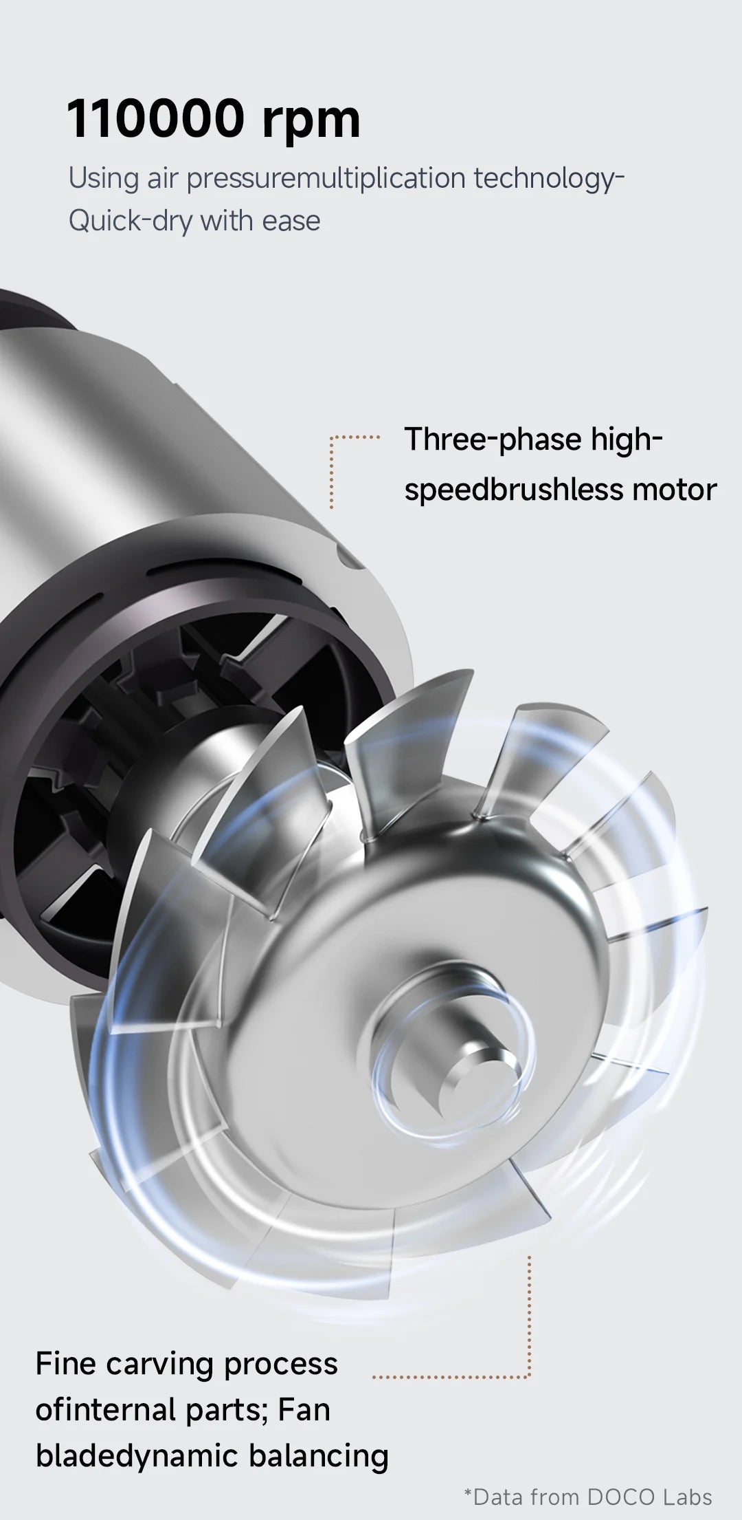 DOCO Hair Dryer High Speed 75m/s 200 million Negative Ions Hair Care 110000 Rpm Professional Lightweight Home Travel Gift