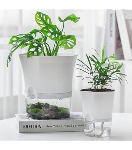 - Convenient Self-Watering Feature: These 6-inch self-watering plant pots are ingeniously designed to store water and autonomously nourish your plants for a week or more.